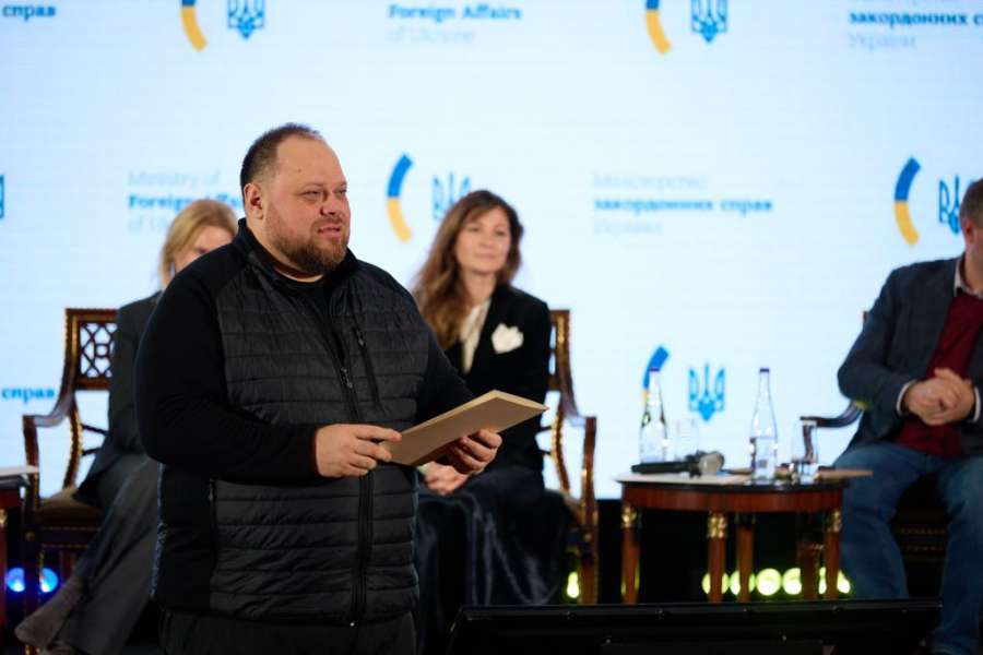 На початку виступу Руслан Стефанчук привітав присутніх із Днем української дипломатії, який вперше в історії цього свята відзначається в умовах жорстокої агресії росії проти України, і від імені Верховної Ради подякував всім представництвам зовнішньополітичної служби України за ефективну роботу в надскладних умовах війни.