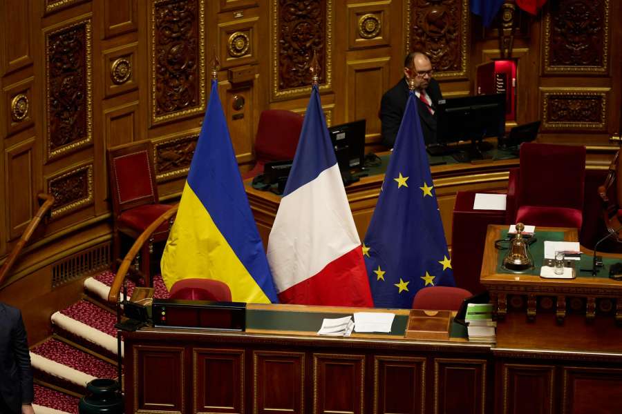 Маю особливу честь перебувати сьогодні у Сенаті Французької Республіки і звернутися до вас із словом з охопленої полум’ям війни України.