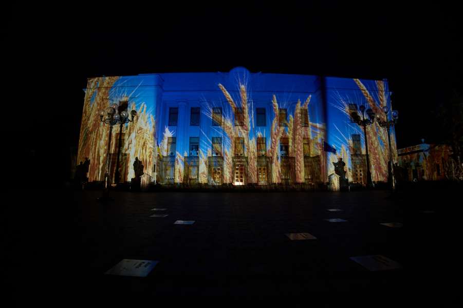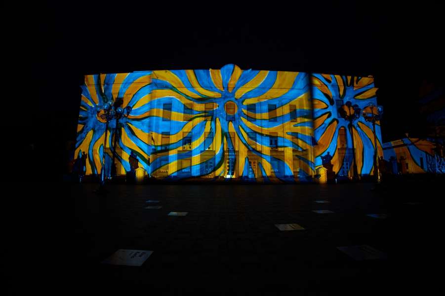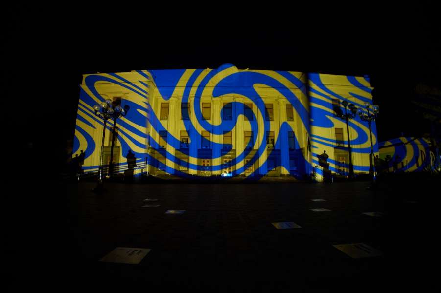 У межах арт-туру «Вшанування пам'яті. Світло для надії», всесвітньо відомий швейцарський художник зі світла Гері Хофштеттер «фарбує» визначні будівлі й пам’ятники українських міст у синьо-жовті кольори.
