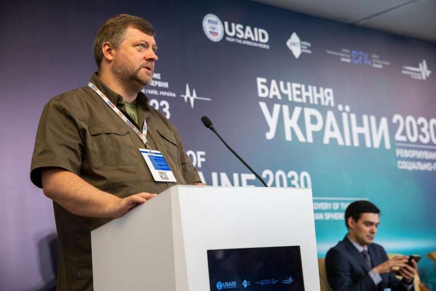 Перший заступник Голови Верховної Ради України Олександр Корнієнко взяв участь у презентації та обговоренні візійного, адвокаційного документа політик «Бачення України 2030: реформування та відновлення соціально-гуманітарної сфери», де виступив із вітальним словом.