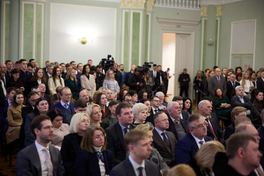 «Сьогодні, у День працівників і працівниць дипломатичної служби України, я від імені всіх наших людей, усього суспільства України дякую вам — усій українській дипломатичній спільноті — за роботу в інтересах держави Україна, в інтересах наших людей. Кожен знає свій результат. І всі, хто ефективний заради України. Усі, хто додає Україні сили щоденно. Усі, чиї ідеї спрацювали й чия енергія розкриває для України нові перспективи. Чи то у системі дипломатичної служби, чи то поза системою, але українські представники, наші представництва — я дякую всім вам!» — наголосив Президент України Володимир Зеленський, звертаючись до українських дипломатів. Він також зазначив, що цього року у міжнародній сфері Україна досягла таких речей, які ще на початку року здавалися майже недосяжними, а головний політичний результат року — це початок переговорів про членство нашої держави у Євросоюзі.