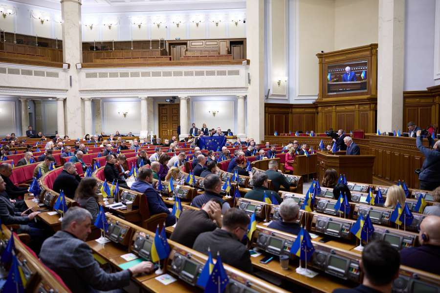 Пане Голово! Шановні члени Верховної Ради України, пані та панове! Для мене велика честь бути з вами ще раз. І дякую, що тут з’явився прапор Європейського Союзу.