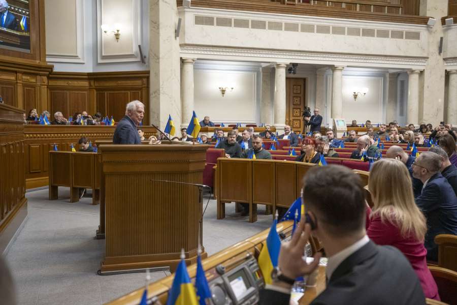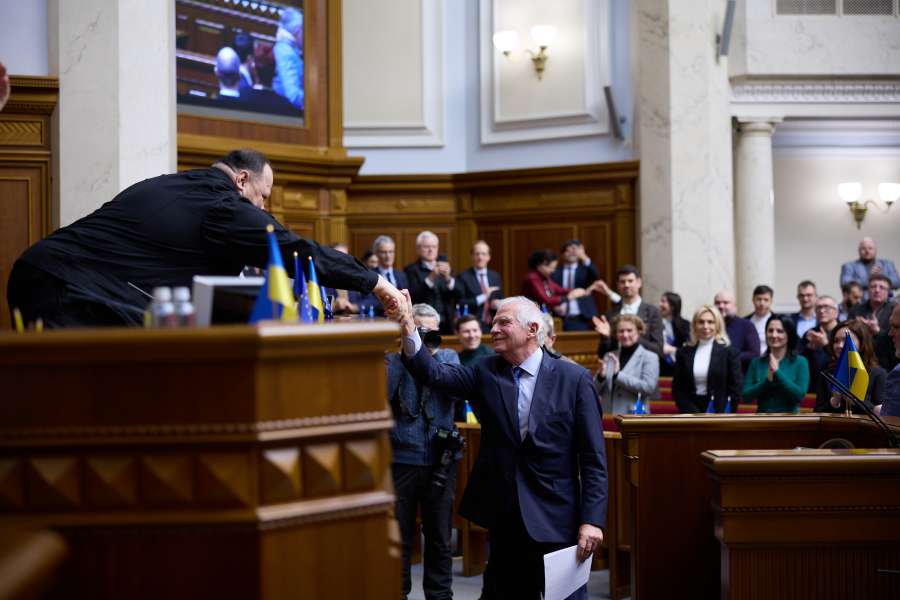 Але ще є одна битва – це битва наративів, битва розумів. Треба боротися як не тільки на полі бою, але й серед розумів. Всесвітня битва наративів, і я також відповідаю за цю битву, тому що уявлення про цю війну у решти світу матиме вирішальне значення для ізоляції путіна, для того, щоб наші санкції працювали. Бо люди на південному сході Азії, в Африці, в інших частинах світу мають зрозуміти першопричини цієї війни, чому вона ведеться, чому ви бороните себе. Тому що для решти світу визначальним історичним досвідом був колоніалізм, який панував у деяких частинах світу. Ми були колоніальними країнами. Але виявляється такий парадокс, що чомусь росію не вбачають імперіалістичною та колоніальною державою, тоді як вона є такою. Ми маємо протидіяти російському наративу. Ця війна — не війна Заходу проти решти країн, це не Захід проти решти воює. Це війна за суверенітет і територіальну цілісність України. Це війна про захист принципів Статуту ООН. Бо світ, який стає більш транзакційним, коли універсальні принципи ще важливіші, ніж будь-коли. Їх необхідно захищати, їх необхідно розуміти, щоб і лідери розуміли, і громадськість. Саме тому Формула миру України сьогодні є єдиним комплексним механізмом забезпечення справедливого та тривалого миру. Тому що вона готується на тих же принципах — принципах суверенітету та територіальної цілісності. Для того, щоб протидіяти російській, протизахідній пропаганді, нам необхідно відповідати своїм принципам, і така сама відповідність принципам має бути у світі, щоб не було подвійних стандартів. Відверто кажучи, я не впевнений, що ми завжди були такими відданими. Саме тому ми в Європейському Союзі, і я особисто, так багато докладаємо зусиль для того, щоб покласти кінець трагедії, цим стражданням цивільного населення в Газі, для того, щоб забезпечити звільнення заручників у Хамасі, і знову ж таки для того, щоб попрацювати над рішенням між двома сторонами, над яким працює міжнародна спільнота.