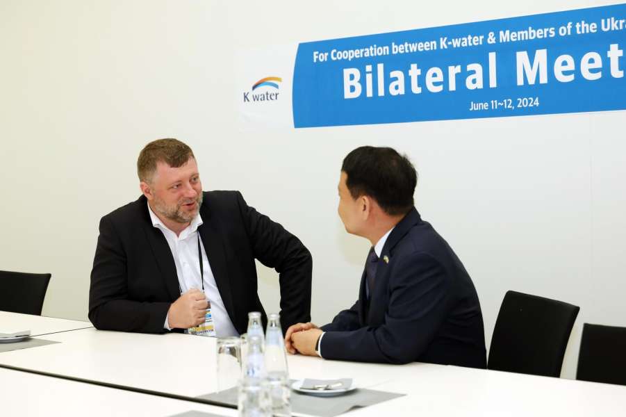 У межах роботи на Конференції з відновлення України у Берліні Перший заступник Голови Верховної Ради України Олександр Корнієнко зустрівся із генеральним директором компанії K-water Сог Де Юном.
