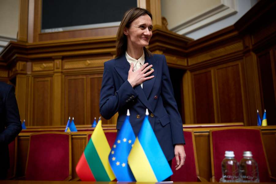 Я хочу привітати всю Верховну Раду України за те, що ви зробили, щоб просунутися в напрямку Європи, і ці переговори є стратегічним пріоритетом як для України, так і для Європейського Союзу. І дуже важливо провести першу міжурядову конференцію щодо вступу протягом цього місяця. Литва готова поділитися своїм двадцятирічним досвідом членства в ЄС, щоб підтримати Україну. Підтримка Литви виходить за рамки політичної дипломатичної та військової допомоги.