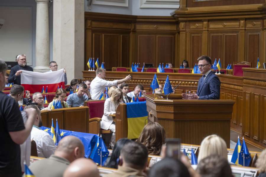 Ми не дозволимо розстріляти ще одне «українське відродження». 1 липня 22-го року стало історичним днем для України та поворотним моментом у дискусії про її європейське майбутнє. І що найголовніше — він став чітким орієнтиром для всієї міжнародної спільноти, цей момент, коли до залу Парламенту (ред.— Верховної Ради України) було внесено прапор Європейського Союзу і поставлено у президії. Не можна було більше маніфестувати шлях, яким Україна має йти, який Польща вже пройшла і ми знаємо, що це не завжди легкий шлях.