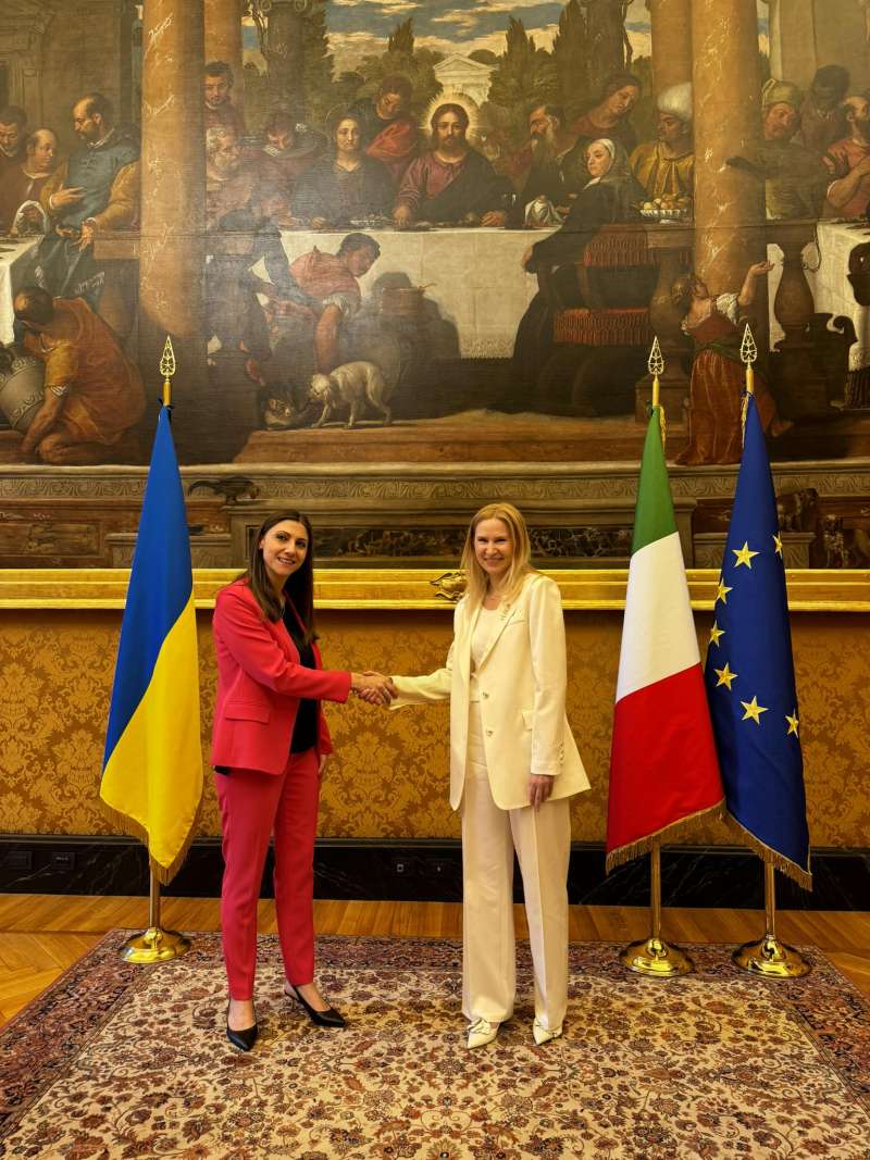 Українська сторона також цінує позицію Італії з підтримки членства України в ЄС і НАТО. “Коли ми говоримо про підтримку України на шляху до ЄС та НАТО, ви маєте її на 100%. На всіх рівнях”, - запевнила своєю чергою Анна Аскані.