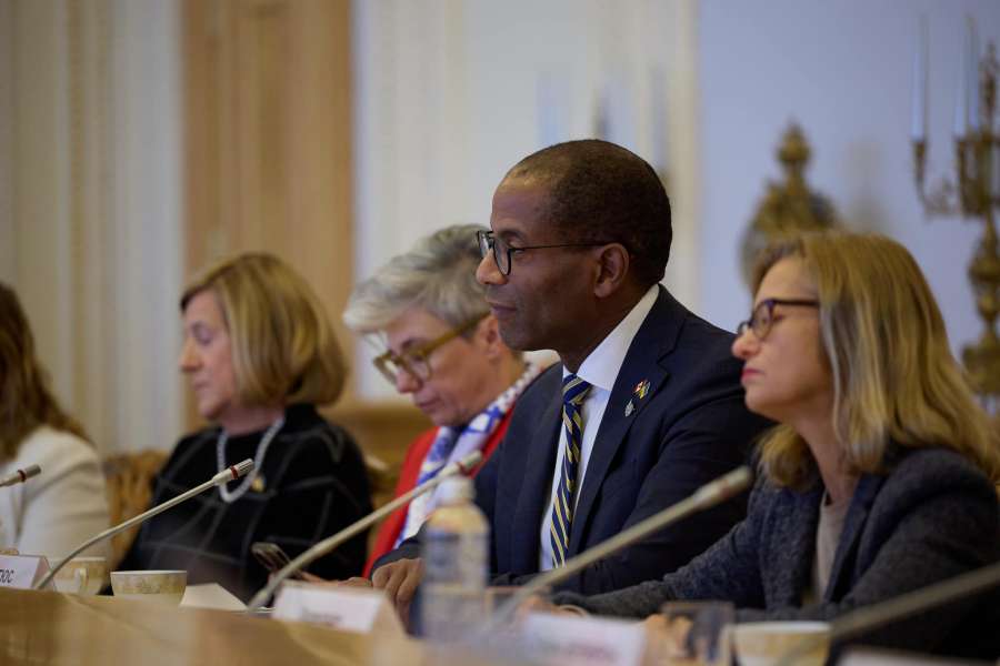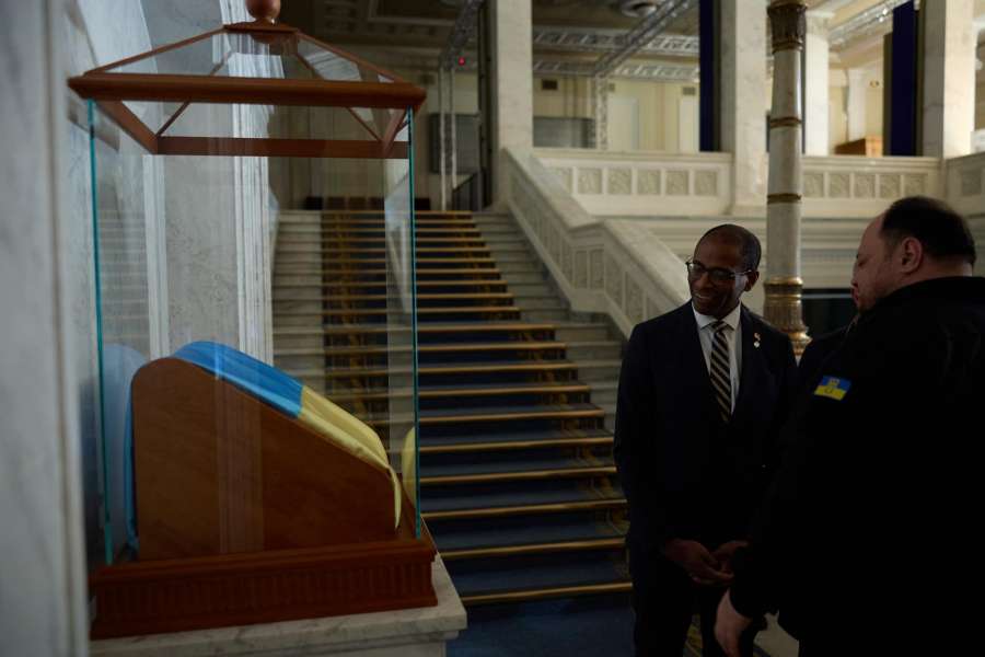 Зустріч розпочалась із церемонії вшанування пам’яті народних депутатів України та працівників Апарату Верховної Ради України, які загинули внаслідок російської збройної агресії, а також військовослужбовців Національної гвардії України, загиблих під час несення служби біля українського Парламенту.