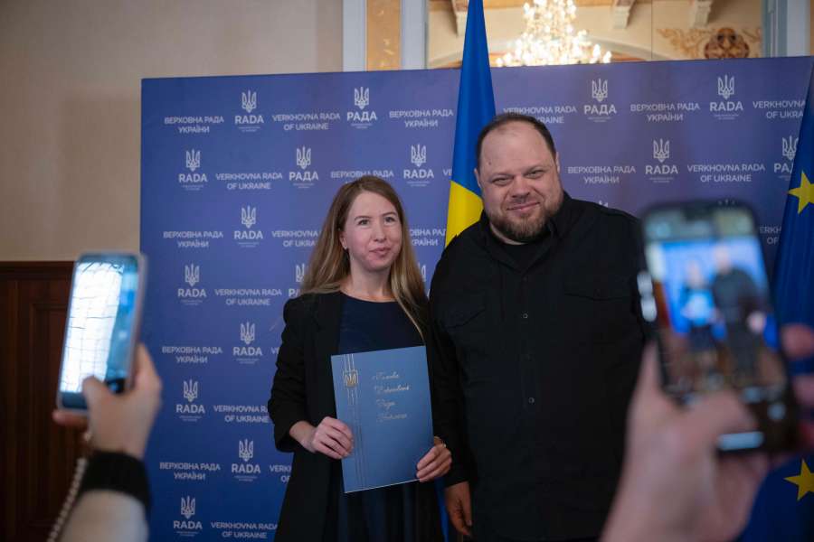 По завершенню виступу Голова Верховної Ради України Руслан Стефанчук вручив журналістам та працівникам радіо та телебачення відзнаки українського Парламенту.