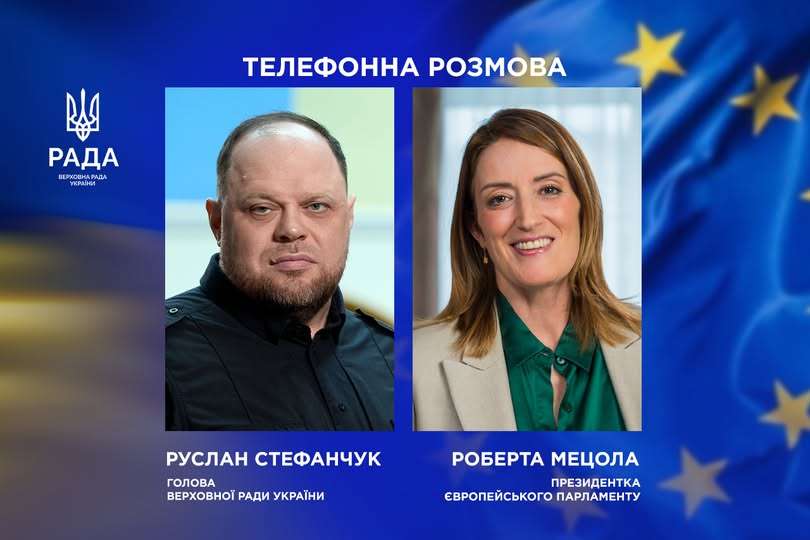 Голова Верховної Ради України Руслан Стефанчук провів телефонну розмову з Президенткою Європейського Парламенту Робертою Мецолою. Сторони погодилися, що Європа та її інституції повинні відігравати активну роль у мирному врегулюванні, а будь-які рішення без участі України будуть суперечити інтересам миру.