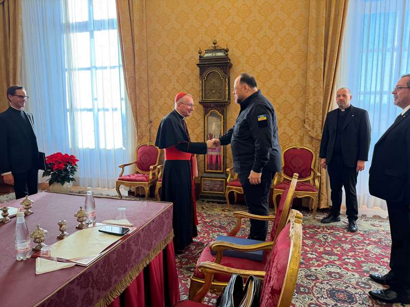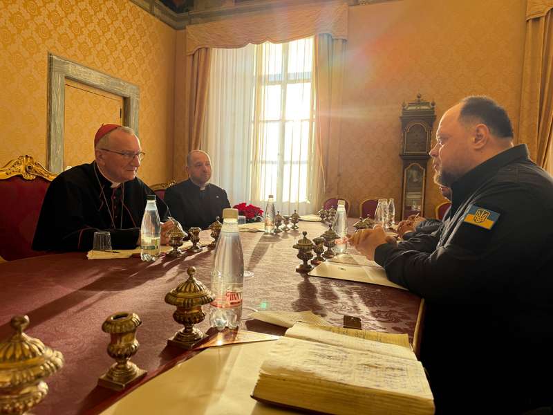 Під час зустрічі Голова Верховної Ради України поінформував Кардинала Пароліна про поточні дипломатичні консультації України зі Сполученими Штатами Америки та європейськими партнерами. Він наголосив, що незмінним орієнтиром України залишається справедливий мир, а не тимчасова пауза, яка дала б росії можливість перегрупуватися.