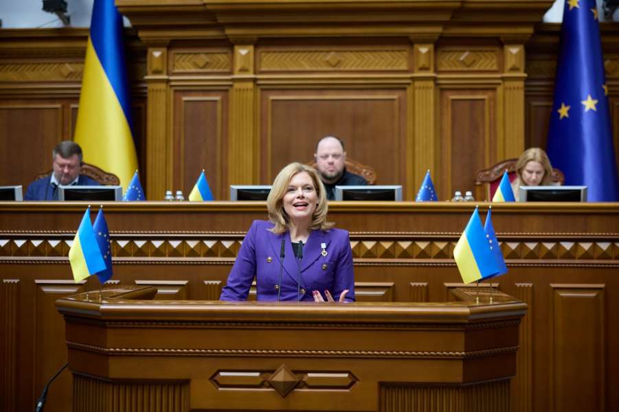 Під час виступу з трибуни Верховної Ради України Юлія Кльокнер наголосила, що Верховна Рада є уособленням демократичного спротиву Європи. “Те, що ви ухвалюєте рішення саме в той час, коли ваша країна зазнає нападу і захищається, – це, справді, справжня стійкість. Кожен сесійний день у Верховній Раді є також посланням і російському президенту, який відчуває лише зневагу до свободи і демократії. І це послання про те, що Україна не дозволить позбавити себе політичної свободи”, – сказала Юлія Кльокнер.