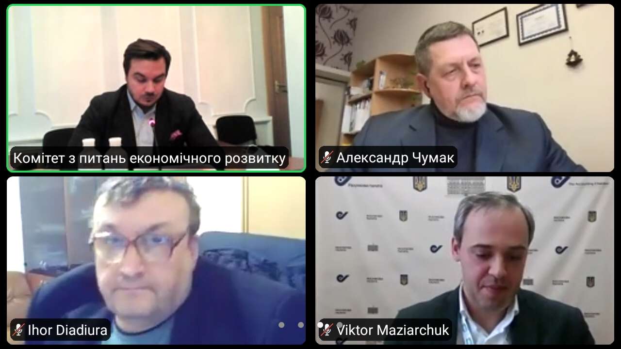 Слухання на тему: «Ефективність та реалізація Урядом Закону України «Про внесення змін до деяких законодавчих актів України, спрямованих на забезпечення додаткових соціальних та економічних гарантій у зв’язку з поширенням коронавірусної хвороби (COVID-19)» відбулися у Комітеті з питань економічного розвитку 18 лютого у форматі відеоконференції.