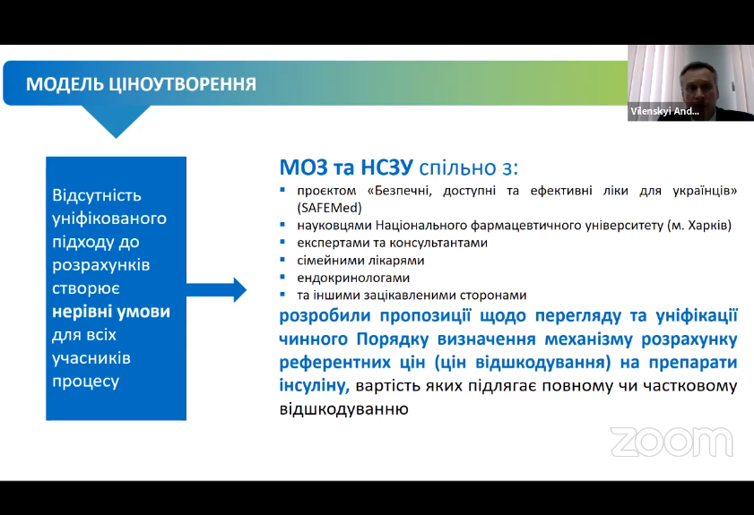 Андрій Віленський нагадав, що з 1 липня 2021 року адміністрування програми реімбурсації (відшкодування вартості препаратів) інсулінів переходить до НСЗУ.
