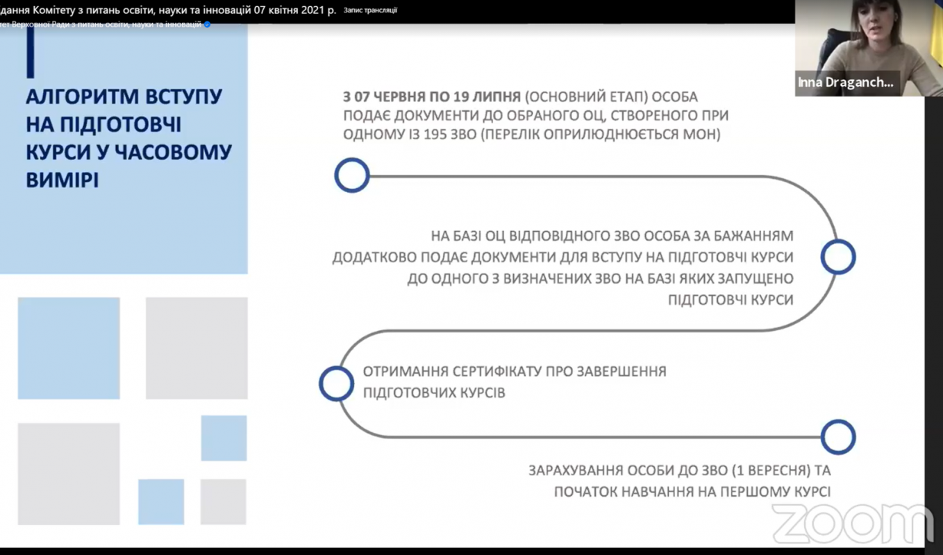Це питання доповіла заступник Міністра з питань реінтеграції тимчасово окупованих територій України Інна Драганчук. Вона представила алгоритм дій для вступників.