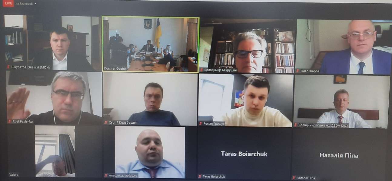 Головував на засіданні Голова Комітету з питань освіти, науки та інновацій С. Бабак. На засіданні були присутні народні депутати України – члени Комітету: О. Лукашев, С. Колебошин, Н. Піпа, Ю. Гришина, Р. Грищук, І. Кириленко, О. Коваль, В. Колюх, О. Лис, Р. Павленко.