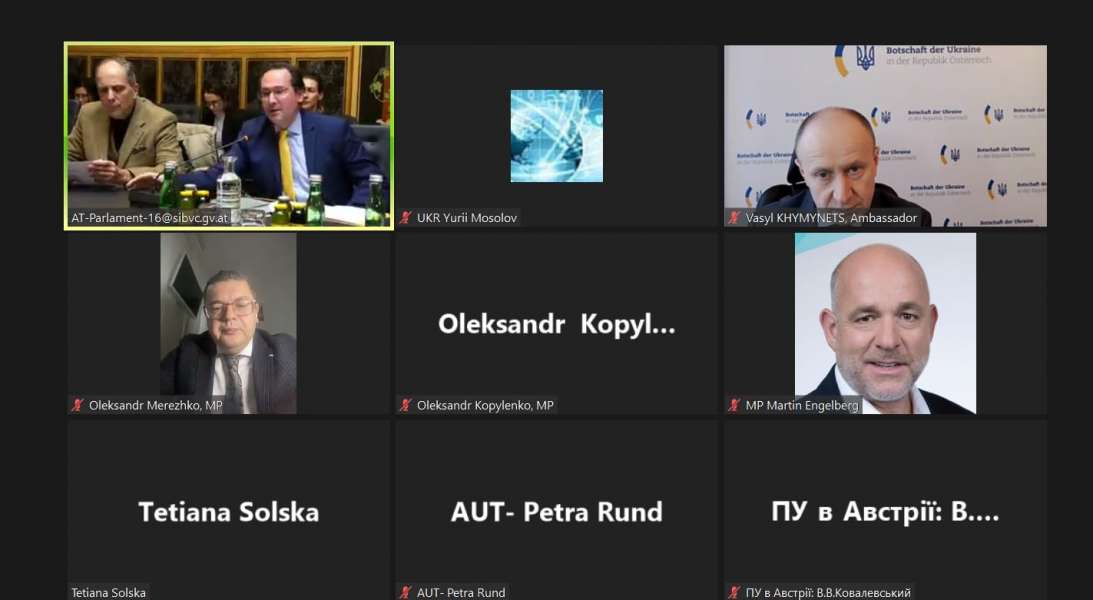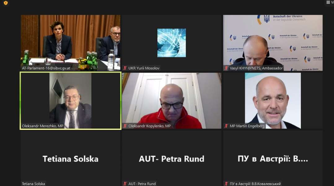 17 січня ц.р. у форматі відоконференції відбулася зустріч Голови Комітету Верховної Ради України з питань зовнішньої політики та міжпарламентського співробітництва Олександра Мережка з Головою Комітету Памелою Ренді-Вагнер та членами Комітету у закордонних справах Національної Ради Австрійської Республіки. У заході взяли участь Заступник Голови Комітету Олександр Копиленко та Надзвичайний і Повноважний Посол України в Австрії Василь Химинець.