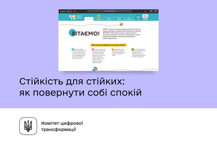 Комітет з питань цифрової трансформації інформує, що на платформі розвитку дошкільнят «НУМО» розміщено добірку із 20 коротких анімаційних відео «Стійкість для стійких», яка містить приклади простих вправ, що допоможуть заспокоїтися дітям та дорослим і психологічно себе підтримати.