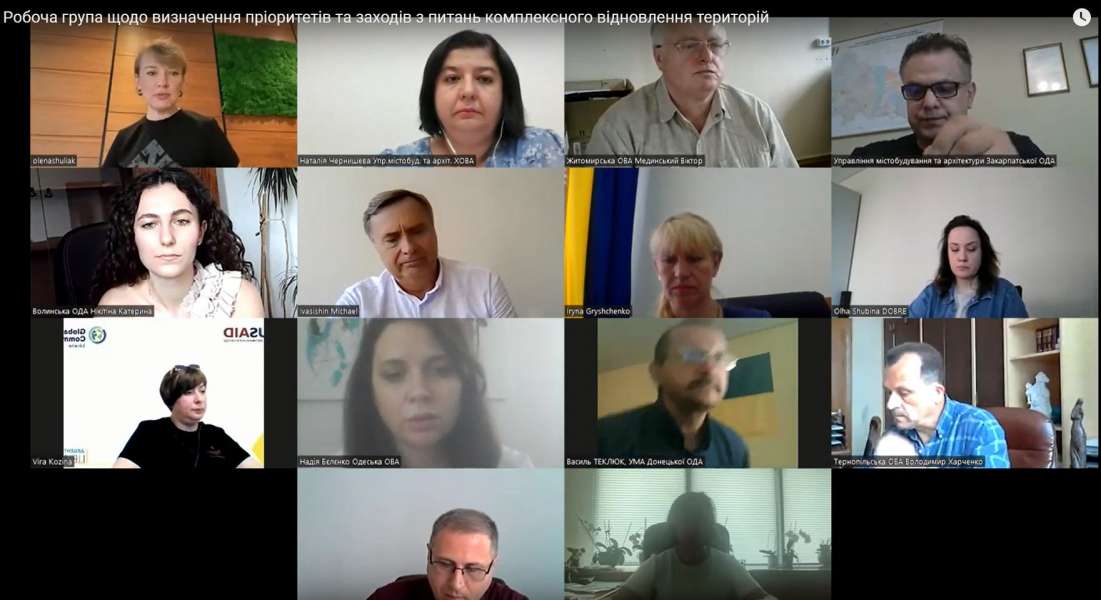 В ході засідання робочої групи представники обласних державних адміністрацій окреслили низку проблемних питань, які постають перед органами місцевого самоврядування при підготовці програм комплексного відновлення територій територіальних громад (їх частин) та інших документів, які передбачені законодавством.