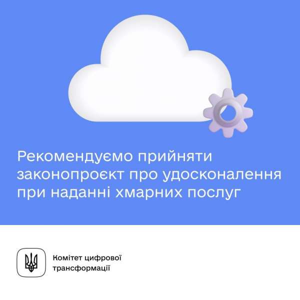Комітет Верховної Ради України з питань цифрової трансформації рекомендує Парламенту прийняти у другому читанні та в цілому проект Закону України «Про внесення змін до деяких законів України щодо удосконалення державного управління і регулювання при наданні хмарних послуг», реєстр. № 9293 від 12.05.2023.