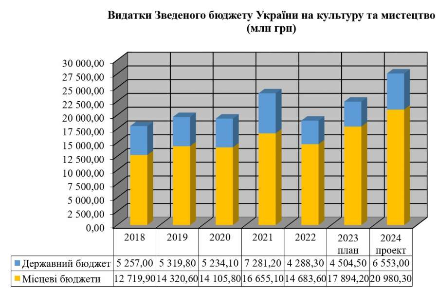 на культуру та мистецтво на 20,74% менше, ніж у 2021 році. У 2023 році видатки