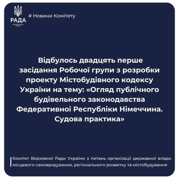 У Комітеті з питань організації державної влади, місцевого самоврядування, регіонального розвитку та містобудування відбулось двадцять перше засідання Робочої групи з розробки проекту Містобудівного кодексу України.