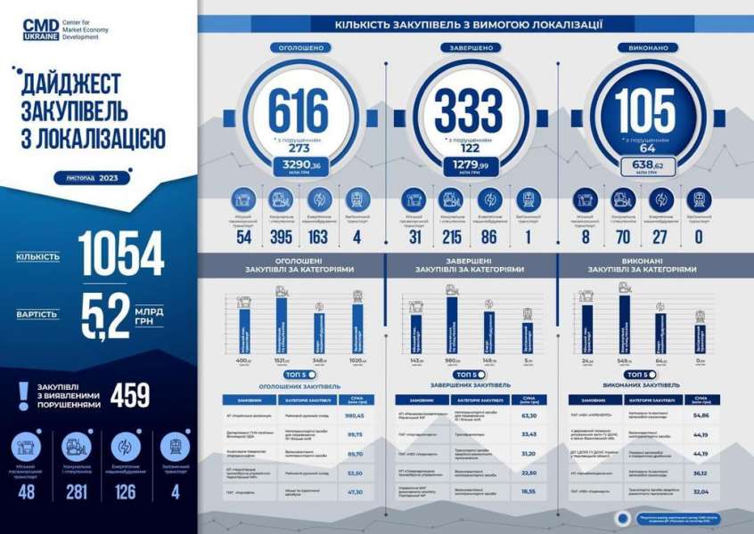 Заступник Голови Комітету з питань економічного розвитку Дмитро Кисилевський повідомляє про виявлені CMD Ukraine факти порушень законодавства про локалізацію, які передані для реагування до Міністерства економіки України та Державної аудиторської служби.