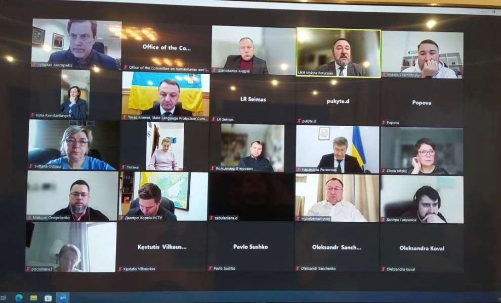 Він повідомив, що спільно з Литовською Республікою реалізується декілька спільних проєктів для українських громадян за кордоном, водночас ця робота має бути посилена. Зокрема, на засіданні йшлося, що у Литві діють курси з вивчення і українською, і литовської мов для громадян України, які вимушено покинули свої домівки. Про це поспілкувались за участю Уповноваженого із захисту державної мови Тараса Креміня.