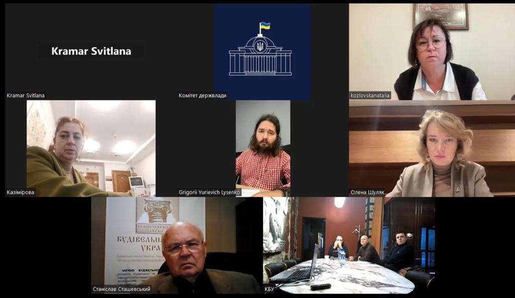 Під час заходу проведено дискусію щодо назви та законодавчого спрямування проекту Закону з розширенням дії його положень на пошкоджені та знищені внаслідок бойових дій багатоквартирні житлові будинки у кварталах (мікрорайонах) застарілого житлового фонду, де передбачається здійснення комплексної реконструкції.