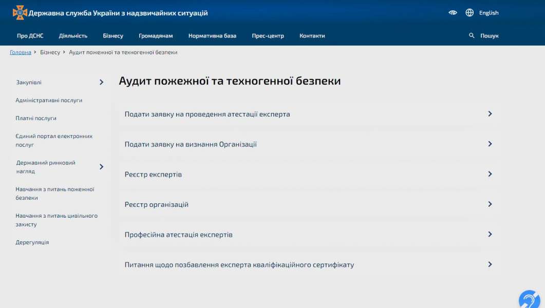 аудит, та експертів у сфері пожежної та техногенної безпеки і договорів