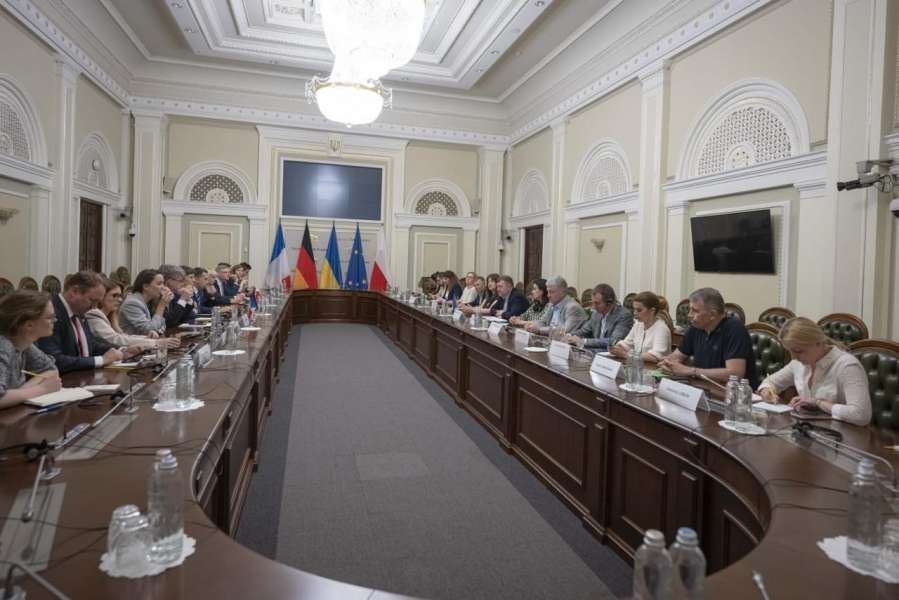Голова Комітету з питань інтеграції України до ЄС Іванна Климпуш-Цинцадзе разом із першим заступником голови Парламенту Олександром Корнієнком та представниками депутатських фракцій і груп взяла участь у зустрічі з представниками “Веймарського трикутника” - державною міністеркою Німеччини у справах Європи Анною-Крістіною Люрман, міністром у справах ЄС Польщі Адамом Шлапкою, а також послом Франції в Україні Гаелем Весьєром.