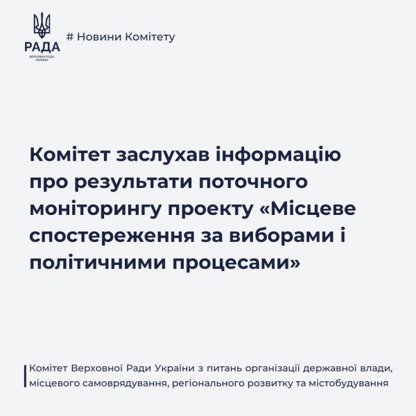 Комітет як бенефіціар проекту «Місцеве спостереження за виборами і політичними процесами» заслухав інформацію про результати поточного моніторингу проекту за І півріччя 2024 року.