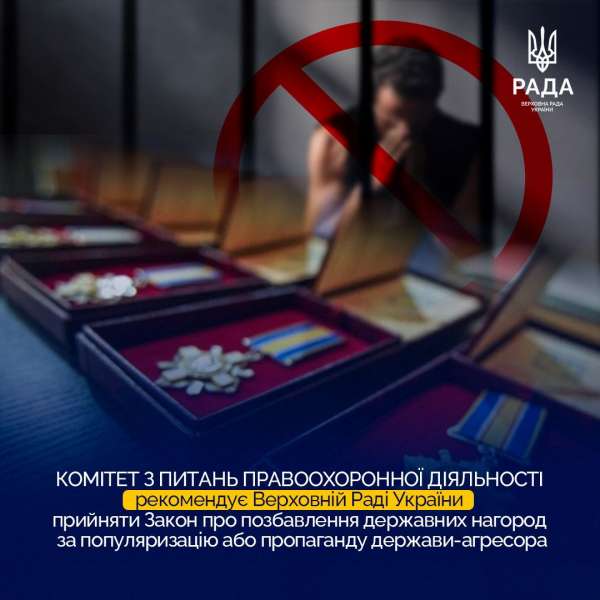 Комітет Верховної Ради України з питань правоохоронної діяльності 15 серпня 2024 року на позачерговому засіданні, на виконання доручення Президента України, рекомендував Парламенту невідкладно розглянути та прийняти закони щодо позбавлення державних нагород за популяризацію або пропаганду держави-агресора та щодо вдосконалення порядку отримання, декларування та поводження з вогнепальною зброєю.