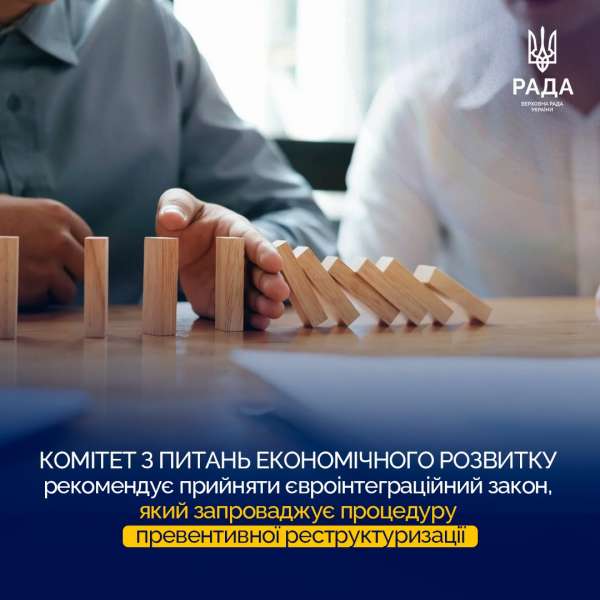 02 вересня 2024 року відбулося засідання Комітету з питань економічного розвитку, на якому було повторно розглянуто проект Закону про внесення змін до Кодексу України з процедур банкрутства та інших законодавчих актів України щодо імплементації Директиви Європейського парламенту та Ради Європейського Союзу 2019/1023 та запровадження процедур превентивної реструктуризації (реєстр. № 10143).