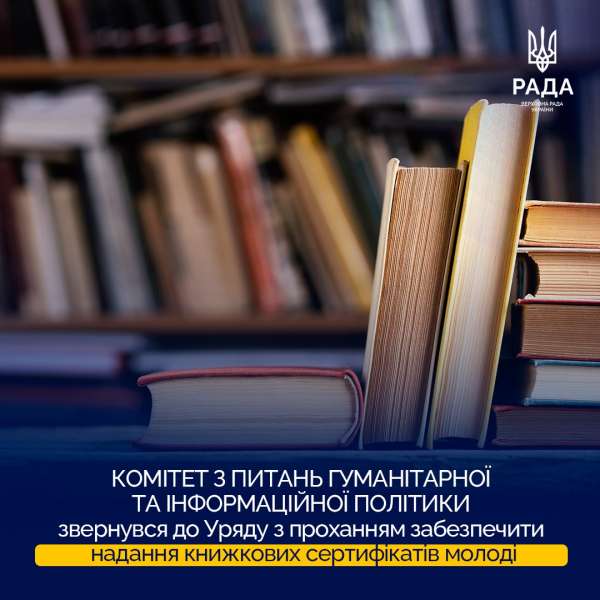 Комітет просить Кабінет Міністрів України невідкладно розглянути питання та поінформувати парламентарів про стан підготовки проєктів актів КМУ на виконання Закону України «Про внесення змін до деяких законів України щодо уточнення діяльності Українського інституту книги з підтримки розповсюджувачів видавничої продукції та надання державної допомоги на придбання книг» (№ 3731-IX) і прискорити терміни ухвалення зазначених підзаконних актів.