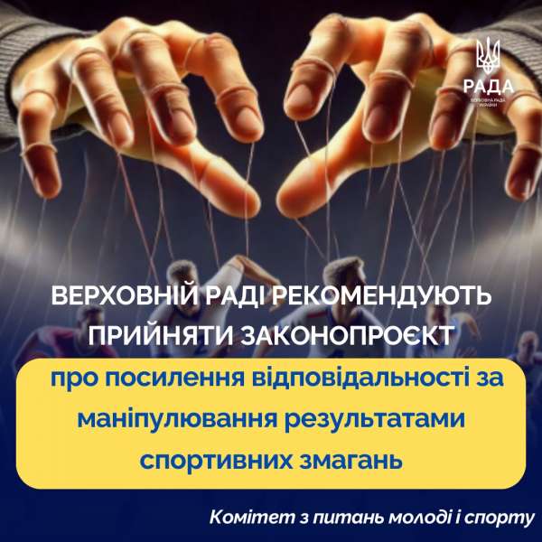 Мета законопроекту – усунути колізії та прогалини у Кримінальному кодексі України щодо відповідальності за протиправний вплив на результати офіційних спортивних змагань.