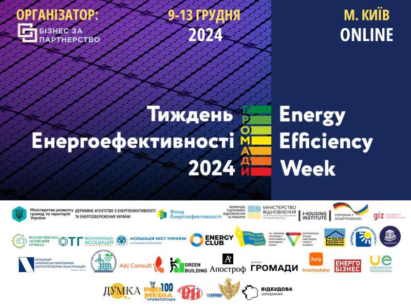 Тиждень Eнергоефективності 2024 - це визначна подія у сфері енергоефективності та енергозбереження, яка проводиться щорічно. Цього року особливий акцент спрямовано на підтримку органів місцевого самоврядування. Ключовим напрямом заходу є сприяння сталому розвитку громад на засадах енергоефективних принципів. Такий підхід є вкрай важливим, адже ефективне управління енергетичними ресурсами на місцевому рівні є запорукою енергетичної незалежності країни.