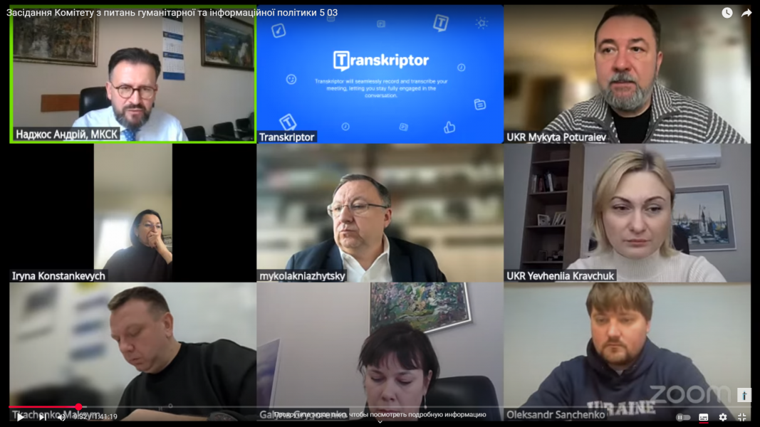 5 березня на своєму засіданні Комітет з питань гуманітарної та інформаційної політики за участю Міністерства культури та стратегічних комунікацій, профільних відомств, діячів культури та медіа обговорив першочергові кроки щодо унормування перетину кордону представниками культурної сфери та представниками медіа.