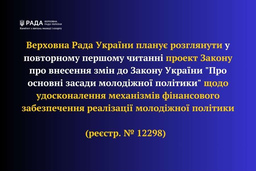 Законопроект підготовлено після направлення Верховною Радою проекту Закону про внесення змін до Закону України «Про основні засади молодіжної політики» та деяких інших законів щодо сприяння розвитку молодіжної політики (реєстр. №12298) до Комітету з питань молоді і спорту для підготовки на розгляд у повторному першому читанні.