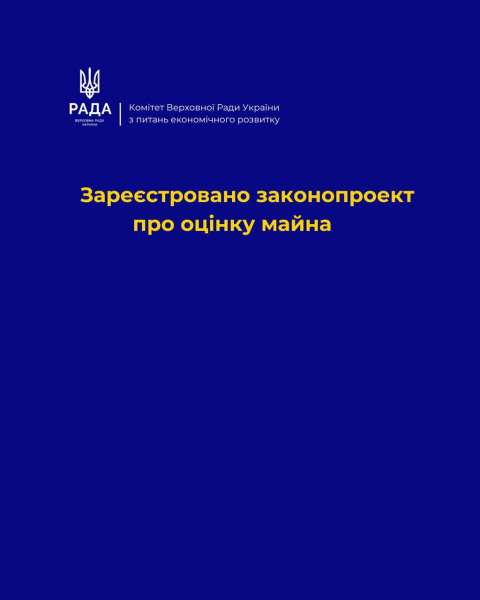У Верховній Раді України зареєстровано новий законопроект про оцінку майна (реєстр. № 13435).