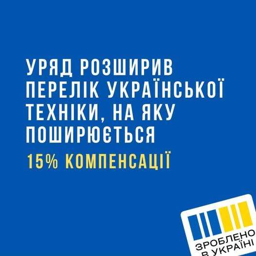 Далі повний список товарів, на які розширено дію програми компенсації 15% вартості: