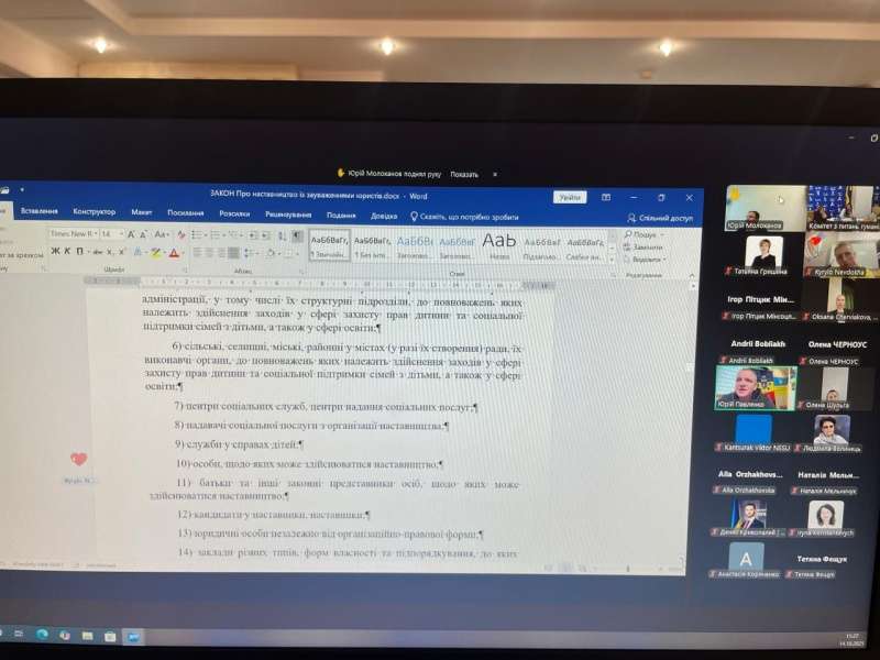 Над доопрацюванням документа активно працювала робоча група, яка провела 10 засідань. До її складу увійшли народні депутати, Заступник Голови Верховної Ради України Олена Кондратюк, представники Офісу Президента, Секретаріату Уповноваженого Верховної Ради з прав людини, міністерств соціальної політики та освіти і науки України. Участь взяли також фахівці Національної соціальної сервісної служби, Державної служби України у справах дітей, громадських організацій і благодійних фондів, що займаються наставництвом та захистом прав дітей. До процесу долучилися радники й експерти місцевих адміністрацій та міжнародних організацій, які опікуються питаннями захисту дітей і молоді.