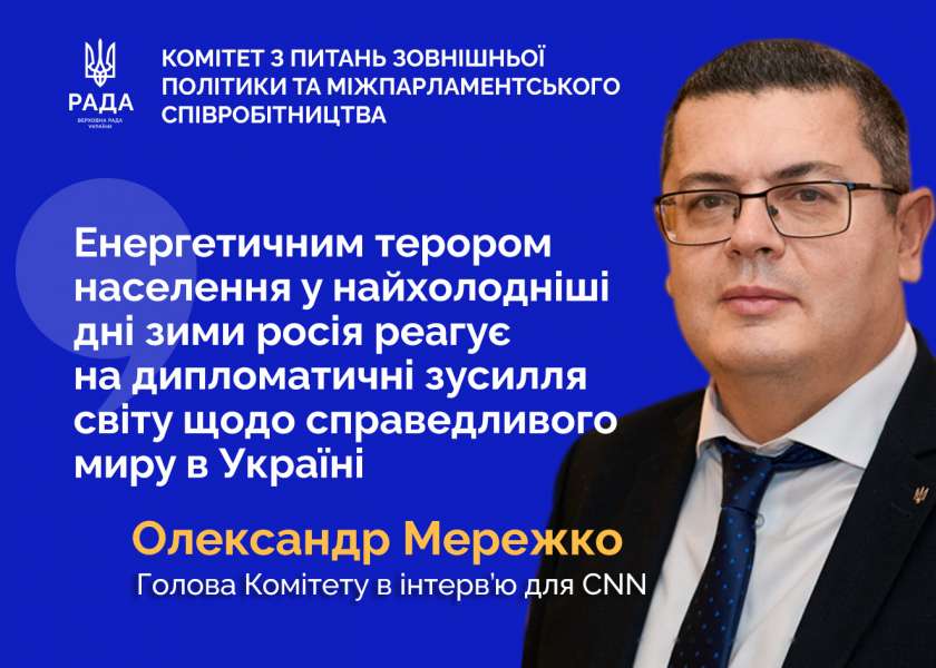 Незадовго до масованої атаки на Україну в 20-градусний мороз голова Комітету з питань зовнішньої політики та міжпарламентського співробітництва Олександр Мережко в інтерв’ю для CNN висловив скепсис щодо так званого енергетичного перемир’я та будь-яких «пауз» з боку росії, підкресливши, що саме під час таких пауз росія накопичує та перекидає дрони й балістичні ракети, щоб згодом відновити бомбардування України.