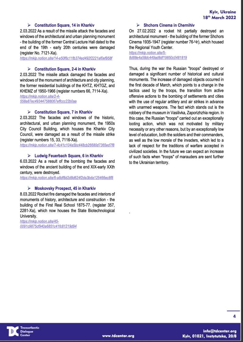 Руйнування чи пошкодження культурної спадщини є воєнним злочином. Таких злочинів з боку росії уже майже 90. І це тільки ті, що зафіксовані офіційно.