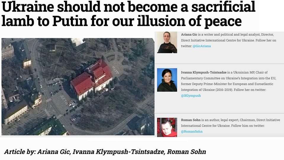 У спільній публікації з Ariana Gic та Roman Sohn для Euromaidan Press голова Комітету з питань інтеграції України до ЄС Іванна Климпуш-Цинцадзе аргументує, чому будь-які «поступки заради миру» - все, крім беззастережного виведення російських військ з усієї території України - були б поразкою не лише України, а й усієї міжнародної спільноти. Це не було б мирним врегулюванням заради життя.