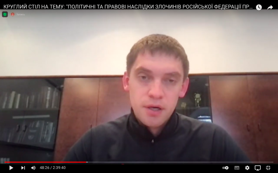 У виступі Олексій Симоненко, зокрема, зазначив, що органи прокуратури всі зусилля зосередили на зборі та документуванні вчинених окупантами злочинів. Він повідомив, що наразі відкрито 12 тисяч кримінальних проваджень за фактами воєнних злочинів. За його словами, масштаби вчинених злочинів є безпрецедентними, опрацьовується кожна заява і повідомлення про факти виявлених злочинів. Прокурори напрацьовують докази для надання їх Міжнародному кримінальному суду.