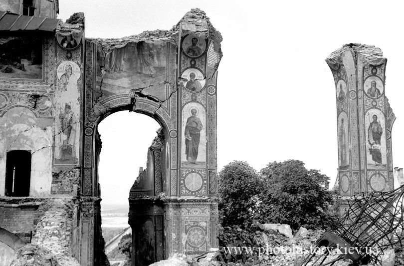 Зранку 22 червня 1941 року киян розбудили перші бомбардування міста, які майже не припинялися до самого відступу радянських військ. Під першими вибухами постраждали військове училище на Печерську, завод «Більшовик», електростанції, авіазавод №13, центральний залізничний вокзал, військові аеродроми Бориспіль, Гоголів, Гостомель, Жуляни, аеропорт у Броварах. За весь час окупації та боїв за Київ на додачу до зруйнованих пам?яток було знищено 800 промислових підприємств, 940 будинків, 140 шкіл, згоріли університет, міська публічна бібліотека, електростанції, водопровід, об’єкти залізничного транспорту, зруйновано мости через Дніпро. Тут велись кровопролитні бої, тактика «спаленої землі» застосовувалась з обох боків.