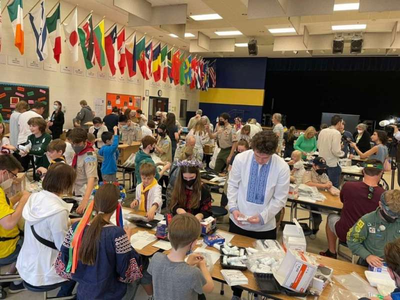Працюють пластуни не тільки в Україні, а і у цілому світі. Пластуни Вашингтону склали кілька сотень аптечок для захисників та передали в Україну, пластунам Дніпра. Вони поширили аптечки серед військових на позиціях.
