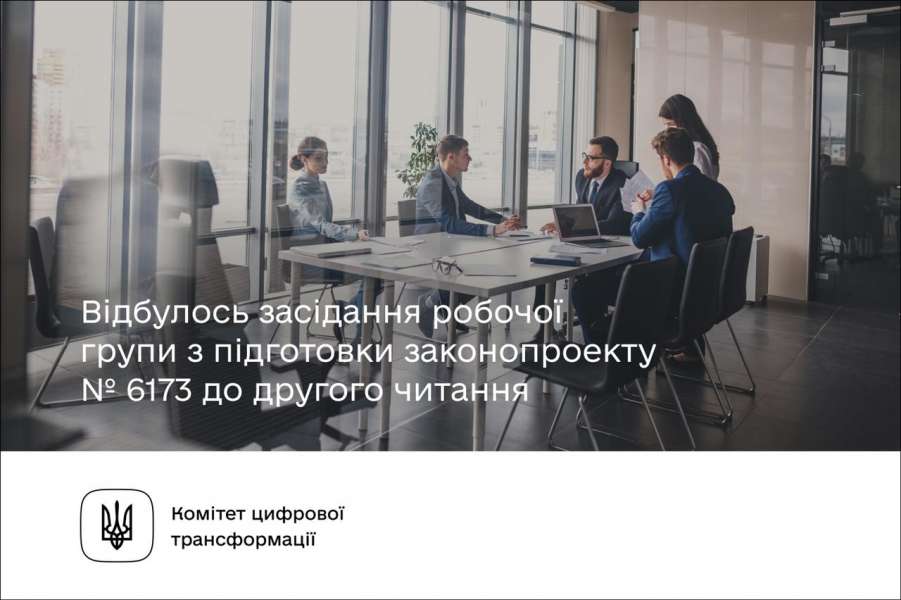 Сьогодні відбулось засідання робочої групи з підготовки проекту закону № 6173 «Про внесення змін до деяких законодавчих актів України щодо забезпечення укладення угоди між Україною та Європейським Союзом про взаємне визнання кваліфікованих електронних довірчих послуг та імплементації законодавства Європейського Союзу у сфері електронної ідентифікації» до другого читання.