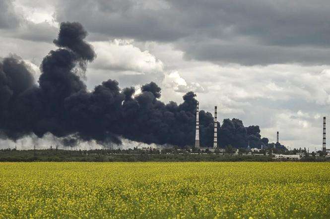Російські війська десятки разів влучали у нафтобази і автозаправні станції, у підприємства хімічної промисловості, зокрема у Рубіжному на Луганщині та в Сумах, що призводило до витоків азоту і аміаку. Азот та аміак піднімаються вгору та забруднюють атмосферне повітря, так само як і хімічні речовини, що вивільняються під час артилерійських, мінометних та ракетних обстрілів. Уламки ракет і снарядів, потрапляючи в землю, отруюють грунт та ґрунтові води.